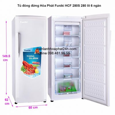 - Tủ đông đứng Hòa Phát 280S có thời hạn bảo hành lên đến 30 tháng dài nhất trên thị trường Thông số kỹ thuật tủ đông đứng Hòa Phát Funiki HCF 280S 280 lít 6 ngăn: